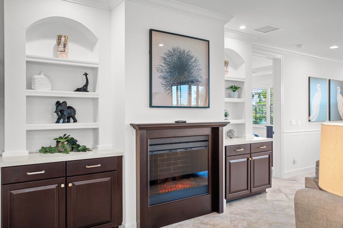 Great Room – Comfy seating, 65" TV, electric fireplace, lanai access.